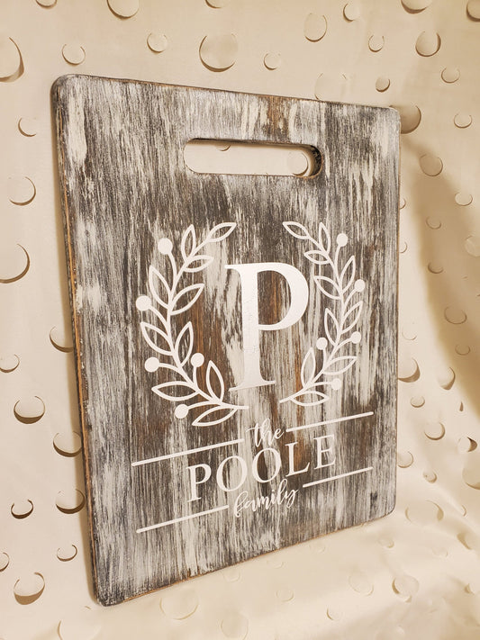 DECORATIVE CUTTING BOARD WITH MONOGRAM AND FAMILY NAME