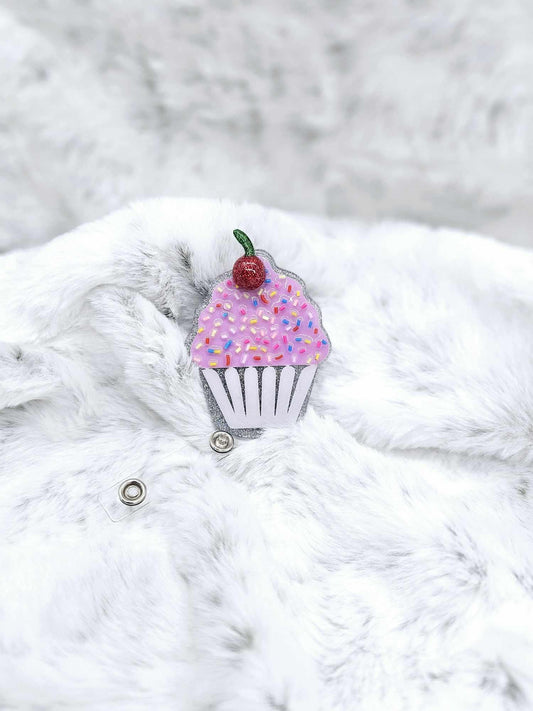 CUPCAKE WITH 3D CHERRY AND SPRINKLES BADGE REEL
