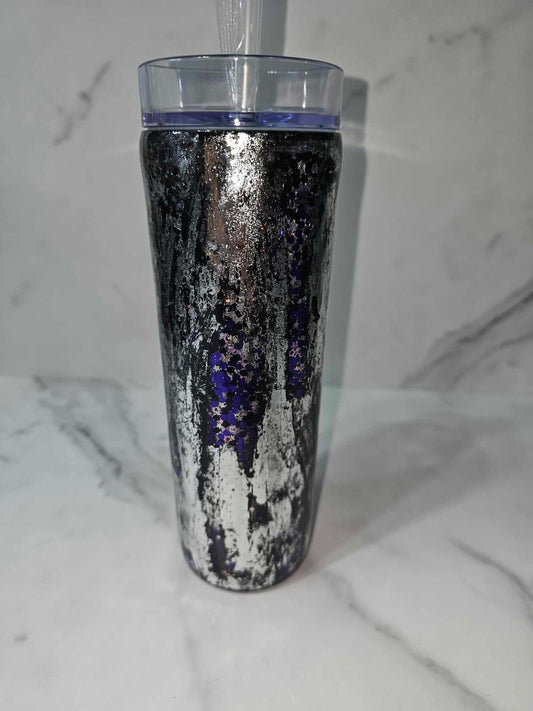 DISTRESSED SILVER SNOW GLOBE TUMBLER