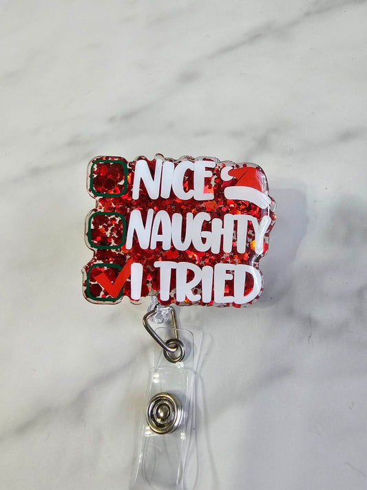 NICE, NAUGHTY, I TRIED BADGE REEL