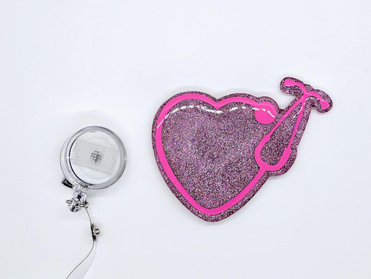 LARGE HEART STETHOSCOPE BADGE REEL